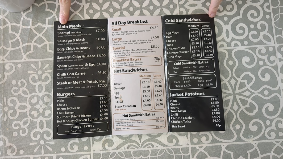 The cafe specializes in a mouthwatering all-day breakfast, where you can choose from smaller or larger portions - but we recommend going for the full experience with the Large All Day Breakfast at just £7.50. Picture this: golden eggs cooked to perfection, crispy bacon, savory sausages, beans, and toast all perfectly plated to greet your senses. If you're in the mood for something a bit different, their paninis are a must-try, especially the Ham & Cheese at only £4.00, which boasts a delightful blend of flavors sure to please any palate. Not to mention, their drinks menu offers refreshing options from smooth lattes to indulgent hot chocolates, all priced reasonably at £2.00.